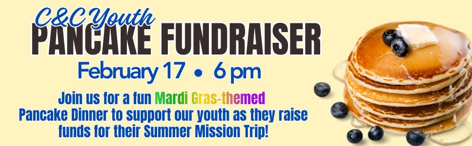 Join us for a fun and flavorful Mardi Gras–themed Pancake Dinner to support our youth as they raise funds for their Summer Mission Trip!